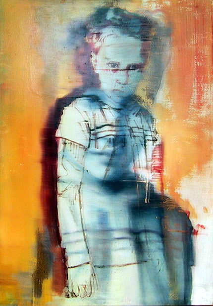 Maya Kulenovic... Sleepwalker (2005, oil on canvas). From Maya Kulenovic: Paintings. "...Most of my works bear some reference to war, mortality and fragility of culture. The extreme experiences of war and genocide, as collective madness, evoke an element of chaos and transform our collective consciousness, bringing out both its creative and destructive elements. I think of my paintings as investigations into the unreliable nature of safety, possessions and knowledge - and the search for spirituality of some sort, as a promise of compassion."